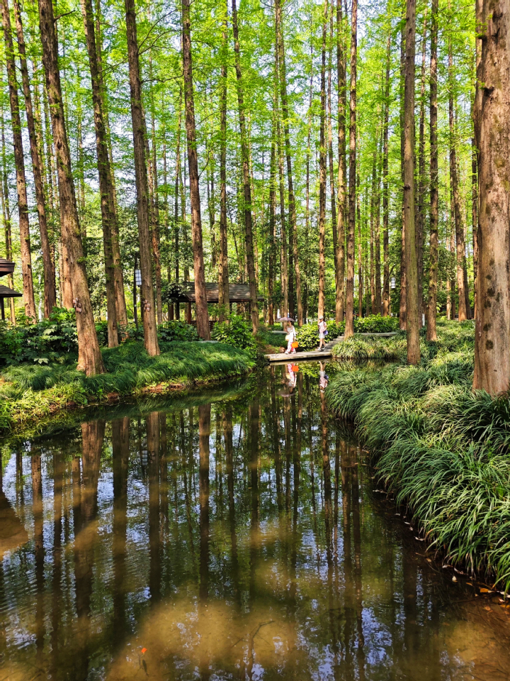 《师大水杉林》 赵莱茵 昂首刺云天,风来万羽翩。 排排翰林笔,蘸露画晴川。