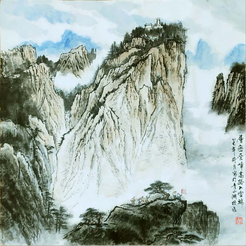 《七律•井冈山颂》 龙祥凤 连绵井冈山重嶂,墨翠巍峨向远端。 南野烟花愁外望,髙峰厚雾锁山寒。 光明圣火燎原起,险隘雄关龙虎盘。 策马英豪齐奋起,保家卫国护民安。