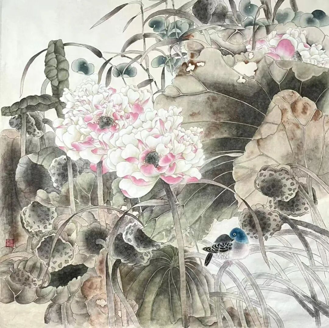 ![]() 程永齢《红花绿草皆有情》(85岁)