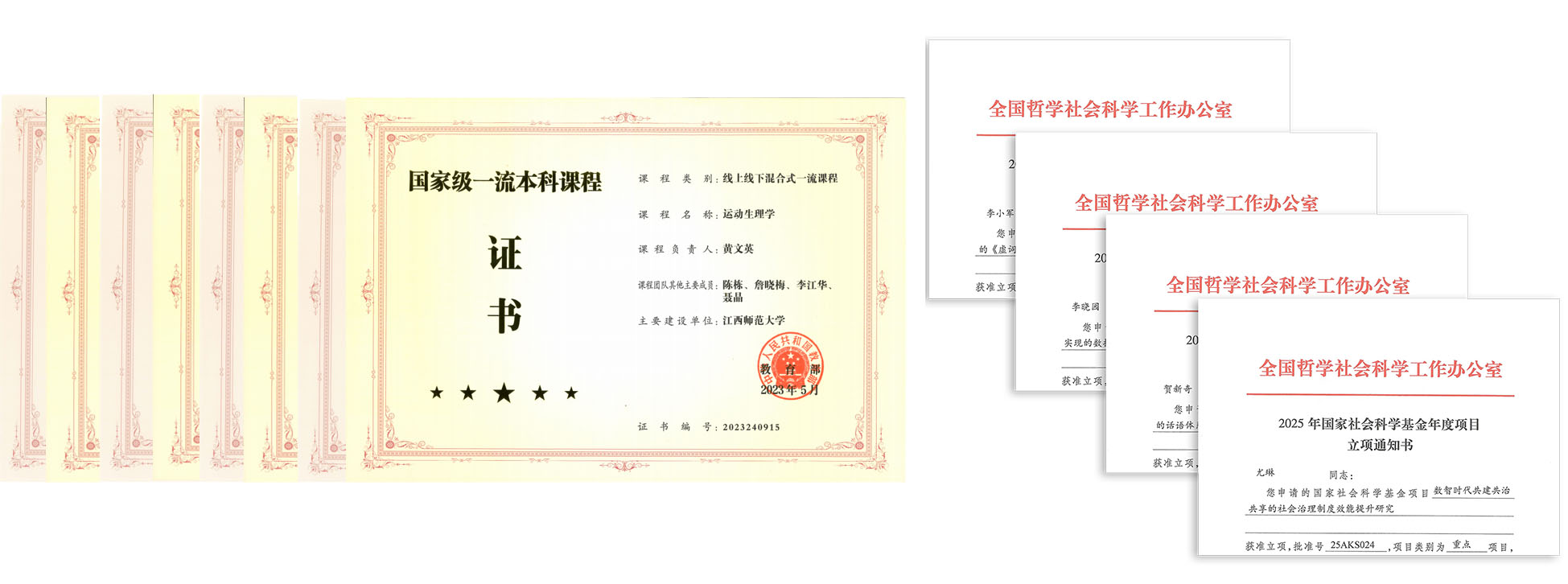 六、内涵建设提质增效 学校获批国家社科基金项目37项,年度项目立项总数位列全国高校第46位,连续8年保持全国高校50强,实现年度项目立项总数、重点项目立项数、教育科学规划立项数、后期资助立项数和思政专项立项数5个全省第一。包揽3项省哲学社会科学优秀成果特等奖,获4项省理论成果奖,位列全省高校第一。新增新时代文明实践协同创新研究院、数据科学和智能化心理测评及服务实验室等2个江西省哲学社会科学重点研究基地。 落实中央教育工作领导小组印发的《高等教育学科专业设置调整优化行动方案(2025—2027年)》,制定学校实施方案,修订本科专业预警管理办法。组建经济与管理学院、药学院、人工智能学院,优化调整国际教育学院职能。化学学科跻身ESI全球前1.79‰,材料科学等6个学科持续稳居ESI全球前1%。25个学科入选“2025软科中国最好学科排名”,总数位列全国师范院校第10位。16门课程入选教育部第三批国家级一流课程,入选数居全国地方师范大学第3位、全省高校第2位,三批国家级一流课程总数达48门,总数居全国高校第74位。 全职引进高层次人才74人,引培国家级人才9人,创历史新高。附属中学徐跃平老师获评国家教学名师,经济与管理学院汤美丽老师荣获全国先进工作者,人才梯队有力夯实。142位学者入选“2025全国高被引学者”。